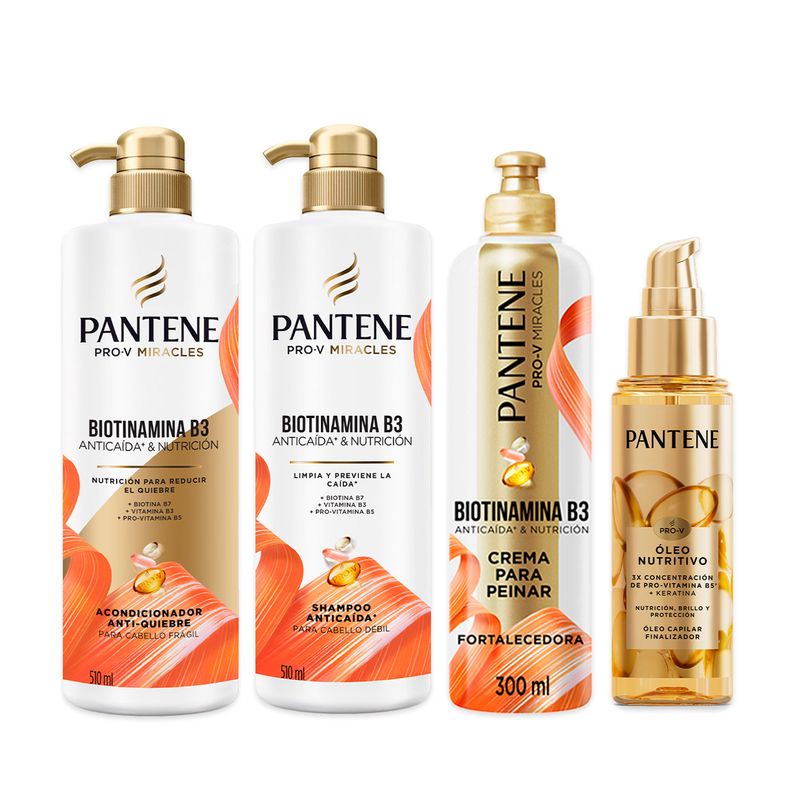 Combo Biotinamina shampoo + acondicionador 510ml + crema + Óleo